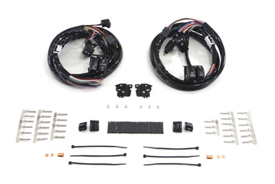 Handlebar switch kit has black switches, terminals, and a 26 wire harness.