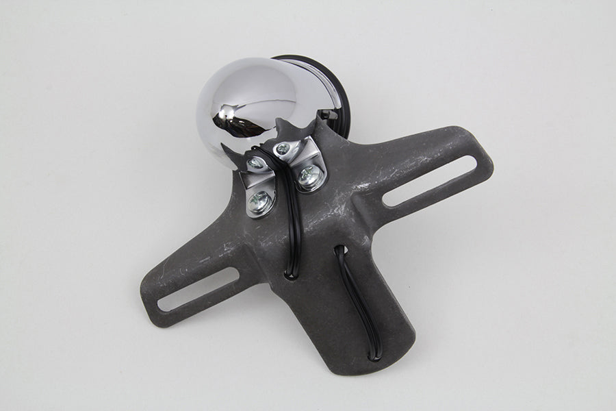Chrome fender mount lamp kit with black plate bracket, chrome hood, red glass lens, a clear glass inner lens, and a dual filament 12 volt bulb.