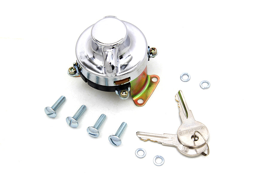 Ignition switch with 5 terminals is early type that fits 1936-1947 cateye dash base and features Briggs and Stratton style die cast numbered lock assembly and tumbler with 2 keys.