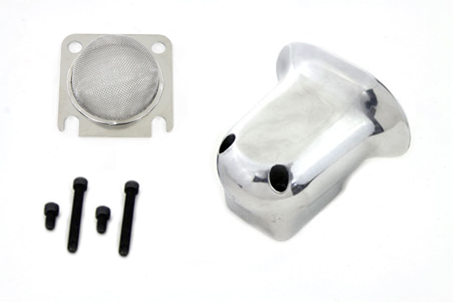 Linkert air scoop kit includes polished scoop screen, an air filter and a linkert patch.