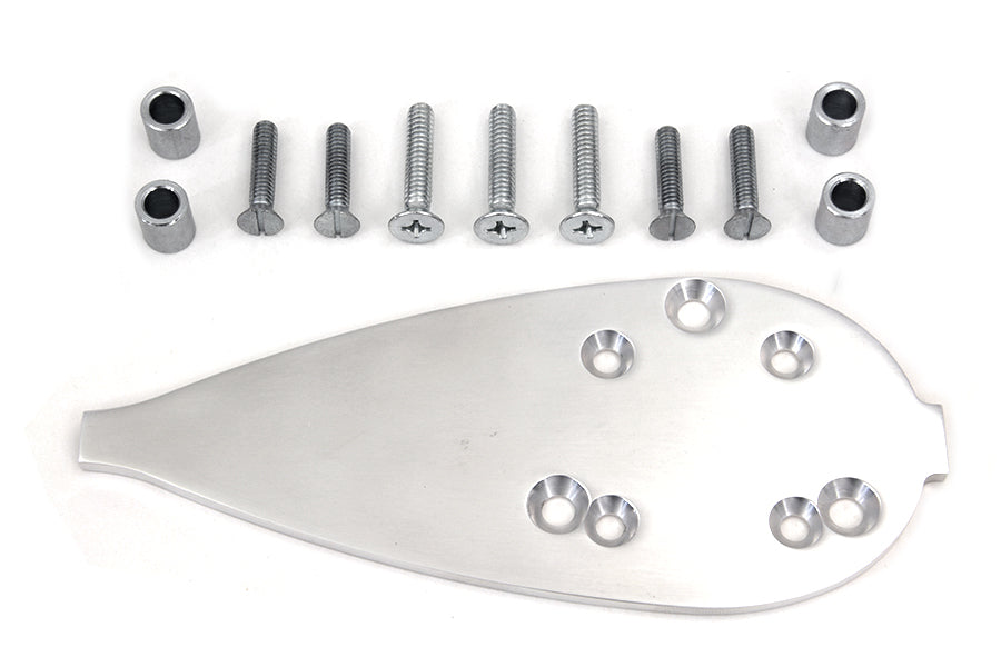 Kit includes aluminum alloy mount plate that holds emblem, four spacers, three 1/4-20UNC screws, and four #12-24UNC screws.