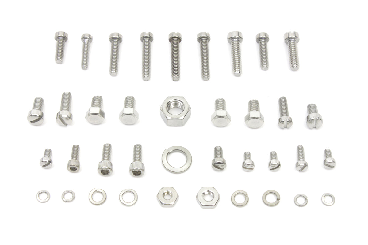 Linkert carburetor screw kit features zinc plated and stainless steel screws and washers for choke and throttle doors and air cleaner back plates.