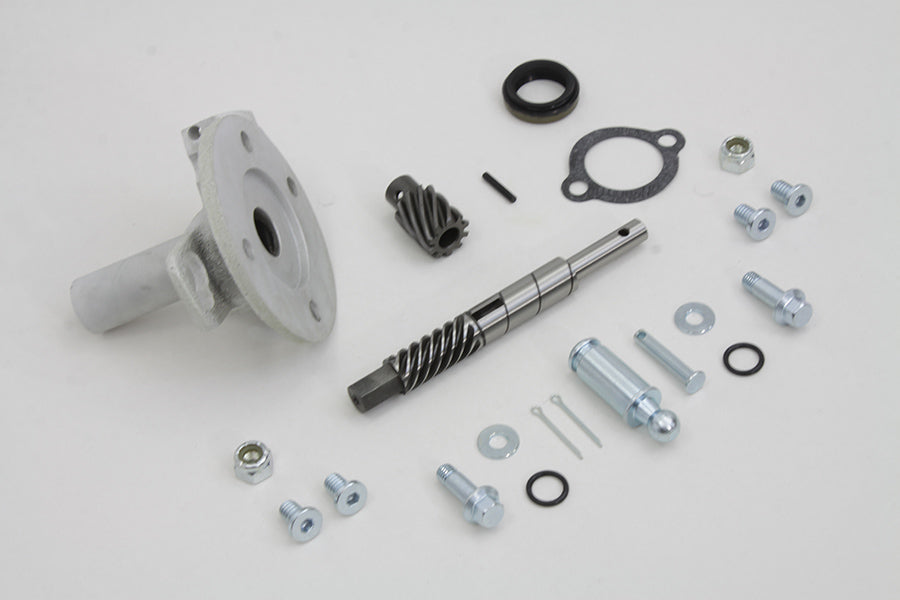 Includes cast base, gear, pin, shaft, mount plate, tachometer drive plug, shouldered mount bolts, seal and gasket.