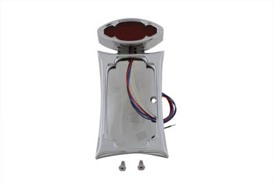 Chrome billet LED Maltese tail lamp with vertical side mount plate frame.