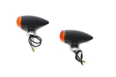 Black mini bullet lamp set with 12 volt 10 watt clear bulbs and amber lenses.