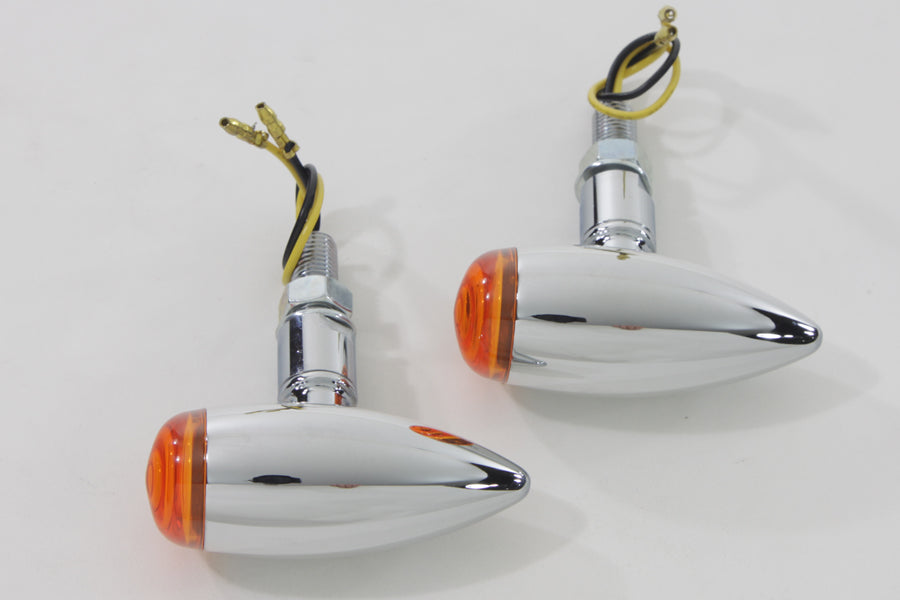 Chrome LED mini bullet lamp set with amber LEDs and lenses with double wire and a 1-7/8" stem for mounting.