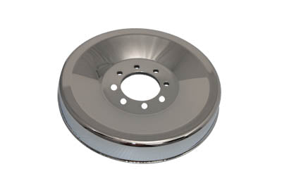 Chrome cover for rear brake drum includes sprocket riveted on.
