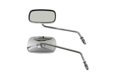 Replica die cast chrome rectangle mirrors have a 3-1/2" x 5" glass surface and a one piece swivel head design with a 8" long stems.