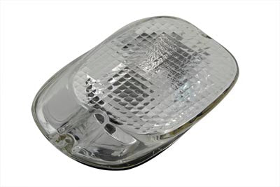 Clear laydown style tail lamp lens with license plate lens facing up.